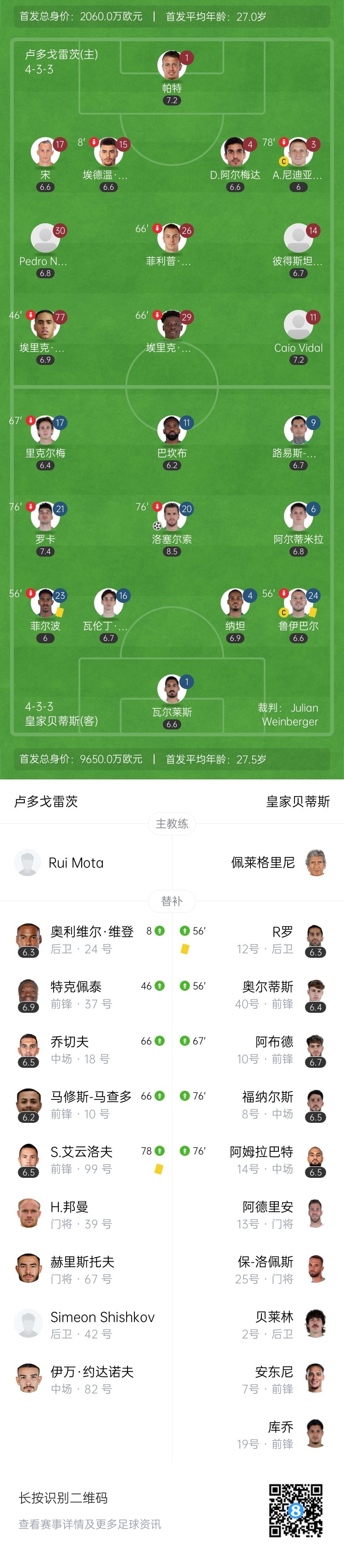 第31分钟,洛塞尔索禁区外右侧接球,内切后起左脚兜射,皮球擦着后门柱打进!门将无能为力!贝蒂斯1-0领先卢多戈雷茨↓