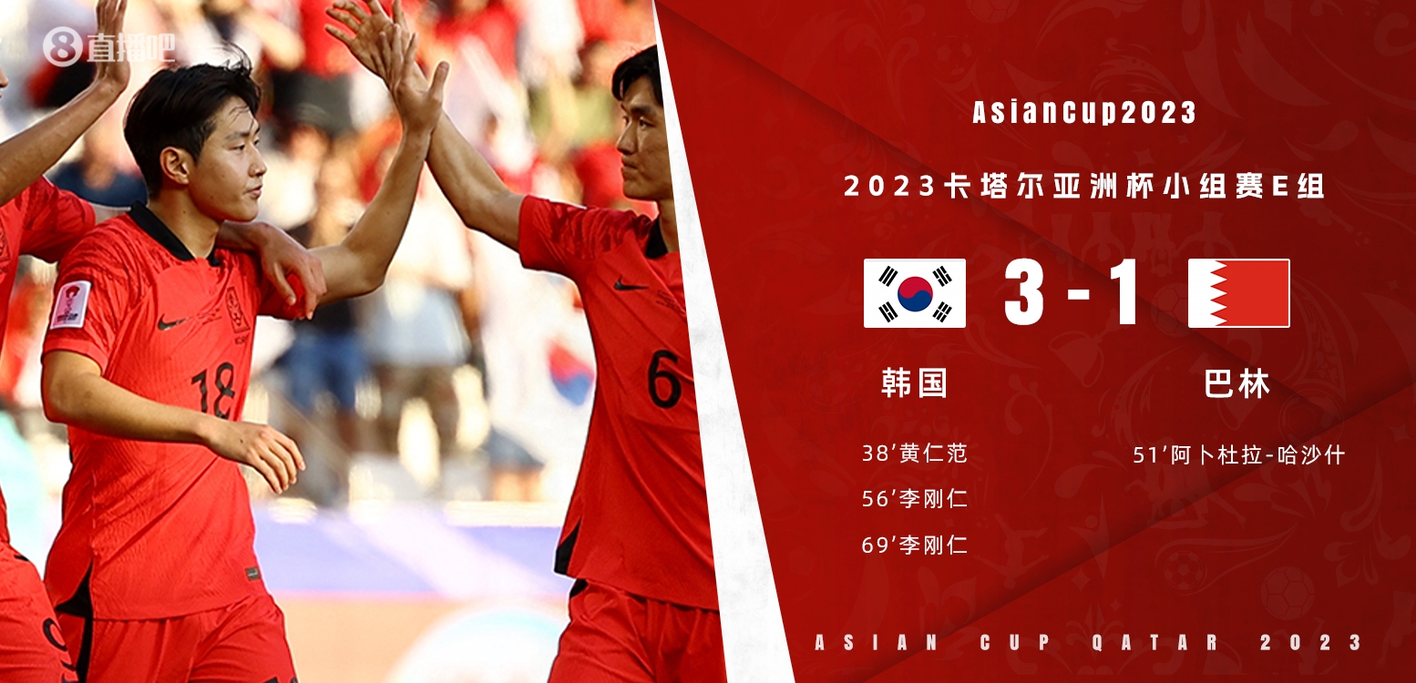 亚洲杯-韩国3比1巴林开门红 李刚仁双响孙兴慜假摔染黄