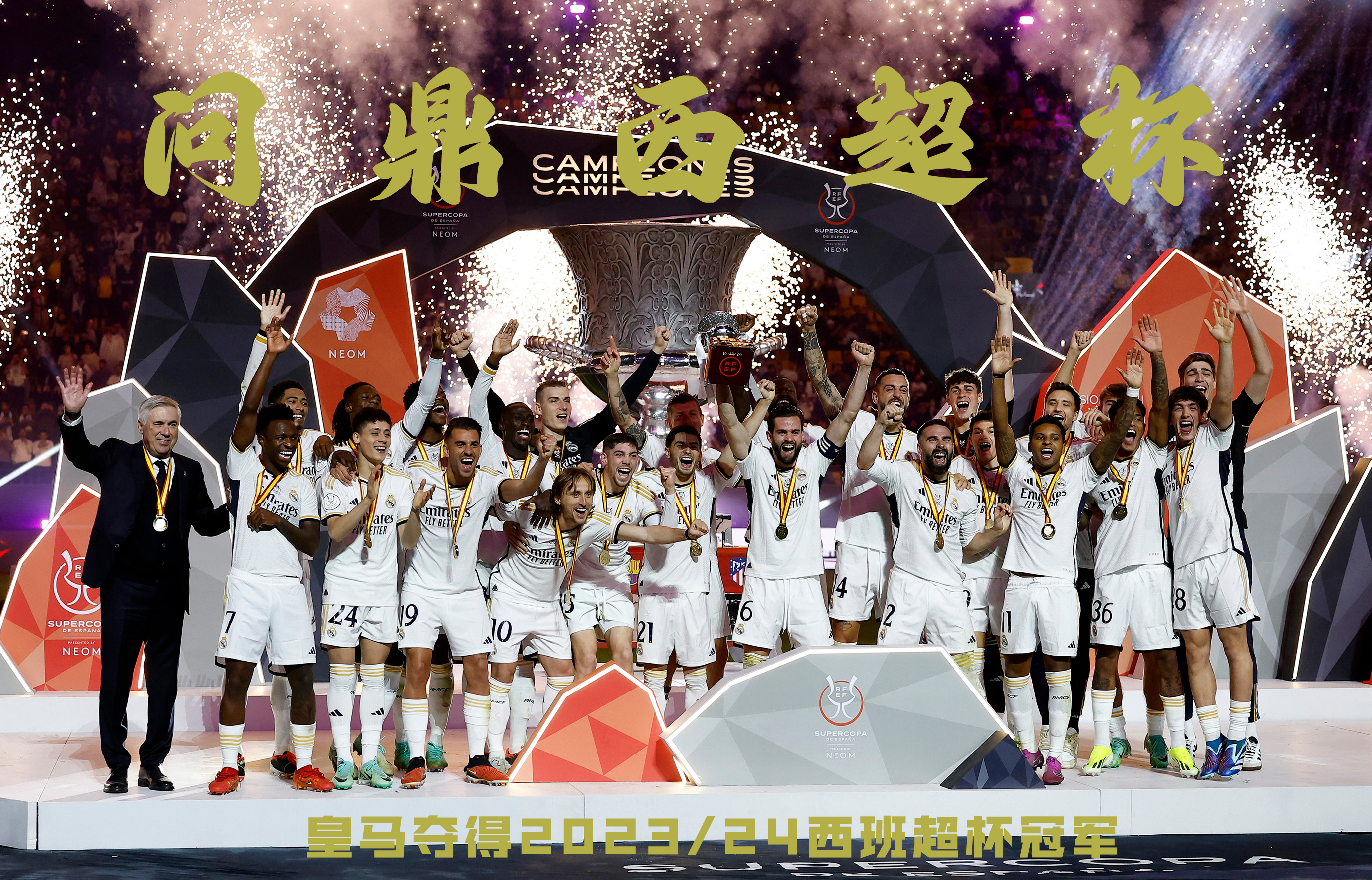 1月15日讯 西超杯决赛,皇马对阵巴萨。上半场皇马梦幻开局,维尼修斯3分钟2球,贝林厄姆、罗德里戈送助攻,费兰远射中框,莱万凌空爆射破门扳回一城,阿劳霍送点,维尼修斯点射命中半场戴帽。易边再战,罗德里戈再下一城,阿劳霍两黄变一红离场。最终皇马4-1巴萨队史第13次赢得西超杯冠军。
