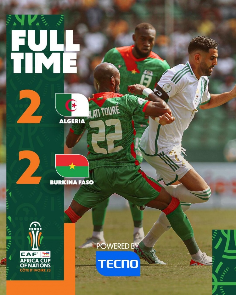 非洲杯-阿尔及利亚2-2绝平布基纳法索 阿尔及利亚两连平暂居第二