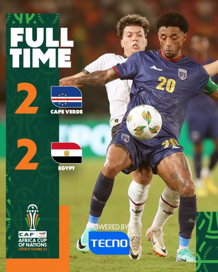 全场比赛结束,埃及2-2佛得角。