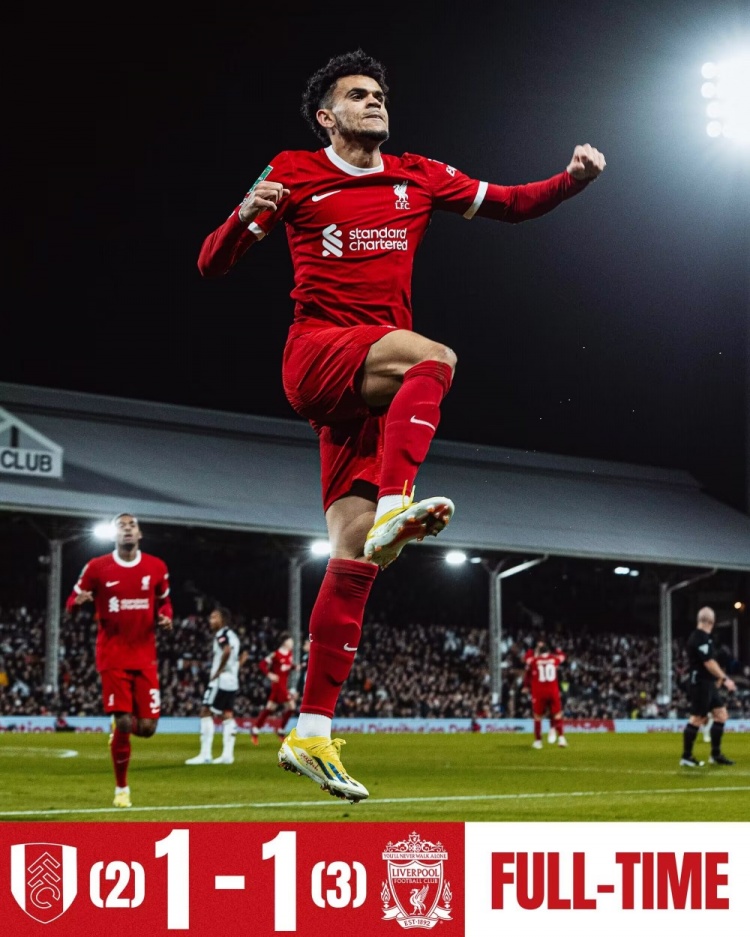 联赛杯-利物浦总比分3-2富勒姆进决赛战切尔西 迪亚斯破门
