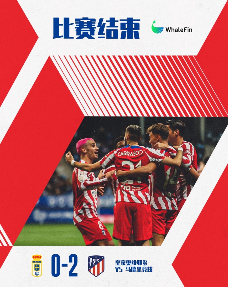 全场比赛结束,马竞2-0皇家奥维耶多。