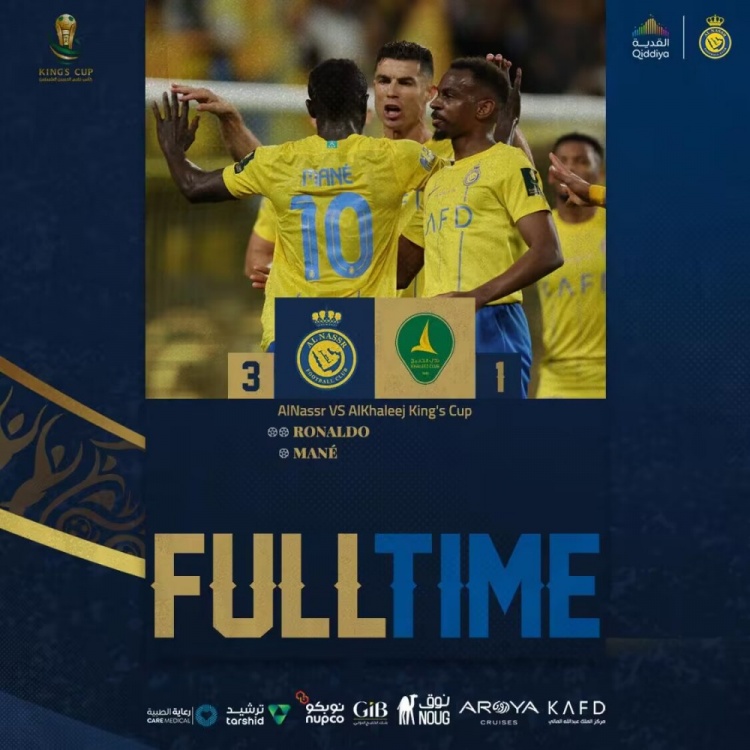 5月2日讯 北京时间5月2日凌晨2点整,2023-24赛季沙王冠半决赛展开角逐,利雅得胜利坐镇主场迎战卡利杰。上半场C罗转身凌空世界波后让点,马内点射,下半场C罗双响&赛季45场44球12助。最终利雅得胜利3-1战胜卡利杰,胜利取得各赛事3连胜并进军沙王冠决赛,胜利将与同城对手新月争夺本届沙王冠冠军。