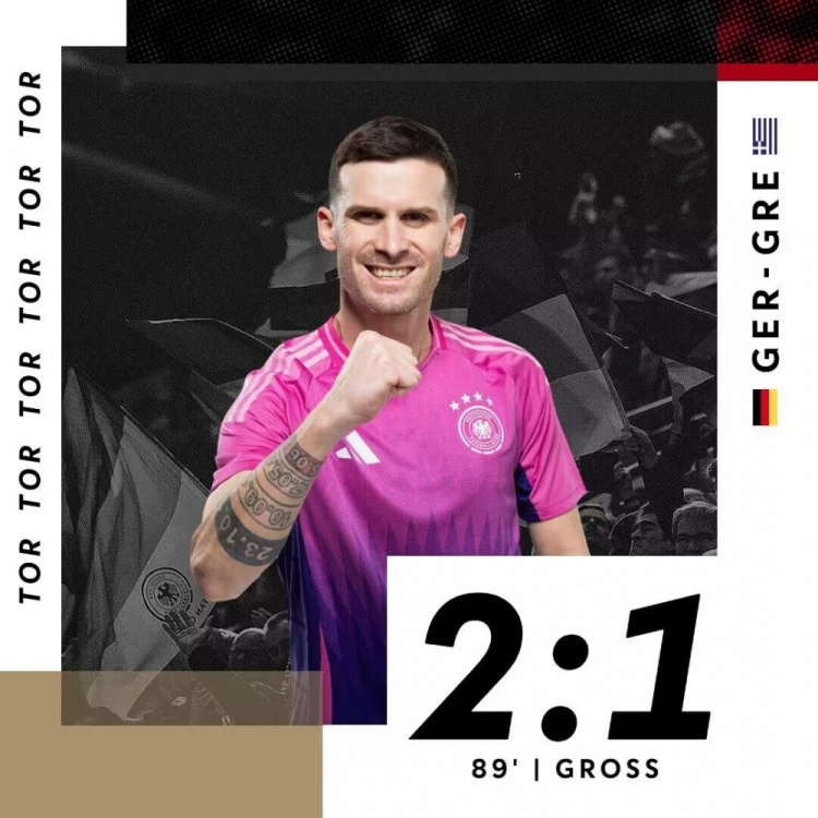 6月8日讯 北京时间2:45,友谊赛,德国对阵希腊。上半场,诺伊尔扑救失误,马苏拉斯补射破门!哈弗茨打进一球,但是越位无效。下半场,还是哈弗茨,禁区内转身射门扳平比分!格罗斯89分钟凌空远射绝杀!最终德国2-1逆转希腊,欧洲杯前2场友谊赛1胜1平!