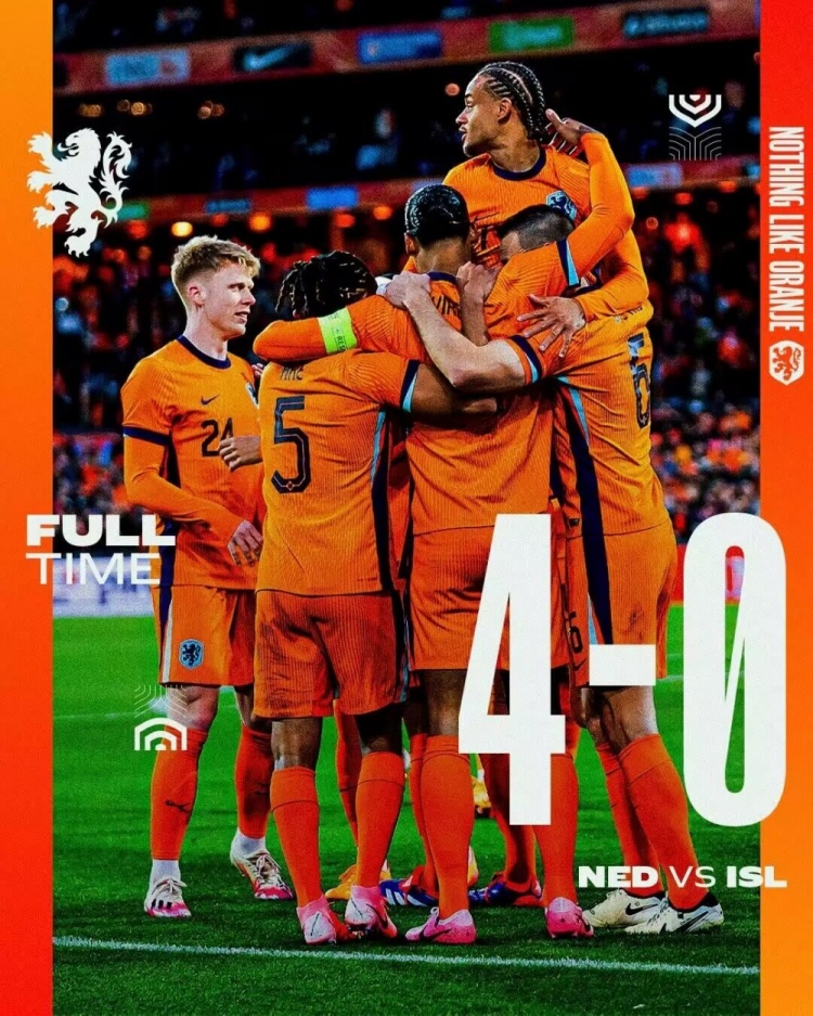 6月11日讯 北京时间6月11日凌晨2时45分,2024年足球友谊赛展开角逐,荷兰对阵冰岛。上半场哈维-西蒙斯斩获国家队处子球,下半场范迪克头球扩大比分,马伦替补传射,德佩进球被吹无效,韦霍斯特破门。最终荷兰4-0大胜冰岛,荷兰取得友谊赛两连胜&狂轰8球且未失球,欧洲杯小组赛首轮将迎战波兰。