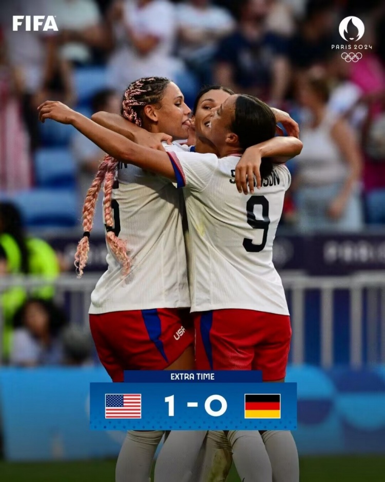 奥运女足-美国1-0德国晋级决赛 史密斯加时进球制胜