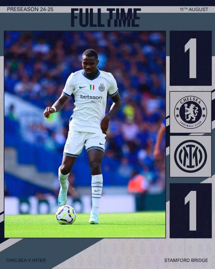 8月11日讯 北京时间8月11日22点,友谊赛切尔西对阵国际米兰。上半场,图拉姆抽射破门。下半场,乌戈丘库替补绝平。全场比赛结束,国际米兰1-1切尔西。