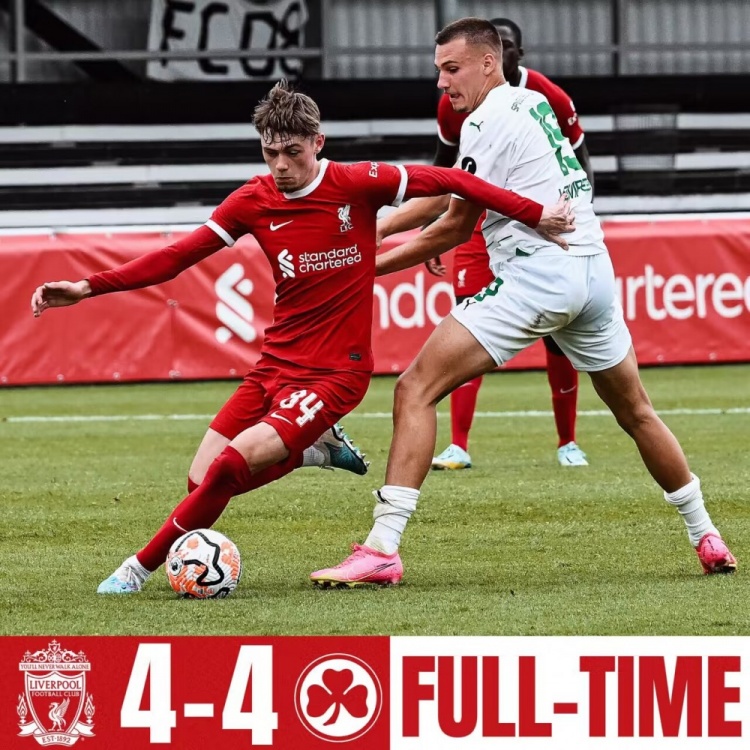 7月24日讯 北京时间7月24日19:20,季前热身赛,利物浦对阵菲尔特。上半场,利物浦牢牢占据优势,迪亚斯单骑闯关破门,若塔错失良机后中柱;下半场,麦康尼尔乌龙,萨拉赫两度助攻努涅斯破门,佩特科夫扳回一球,西布双响反超比分,萨拉赫第89分钟绝平。最终,利物浦4-4战平菲尔特。