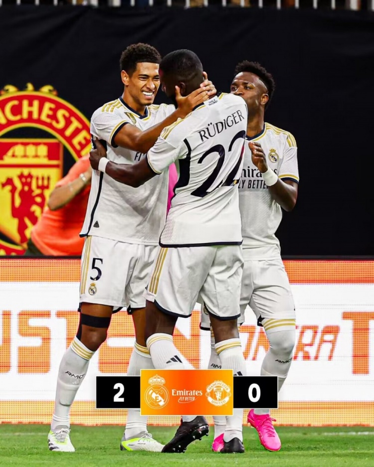 友谊赛-皇马2-0曼联热身赛两连胜 贝林厄姆处子球何塞卢潇洒倒钩