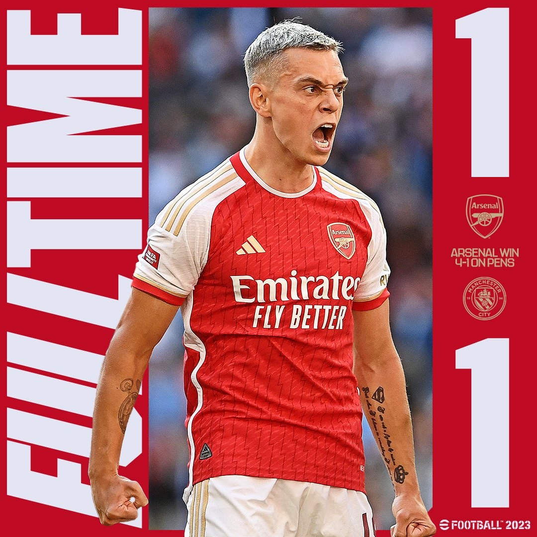 社区盾-阿森纳点球5-2曼城夺冠 特罗萨德绝平丁丁罗德里失点