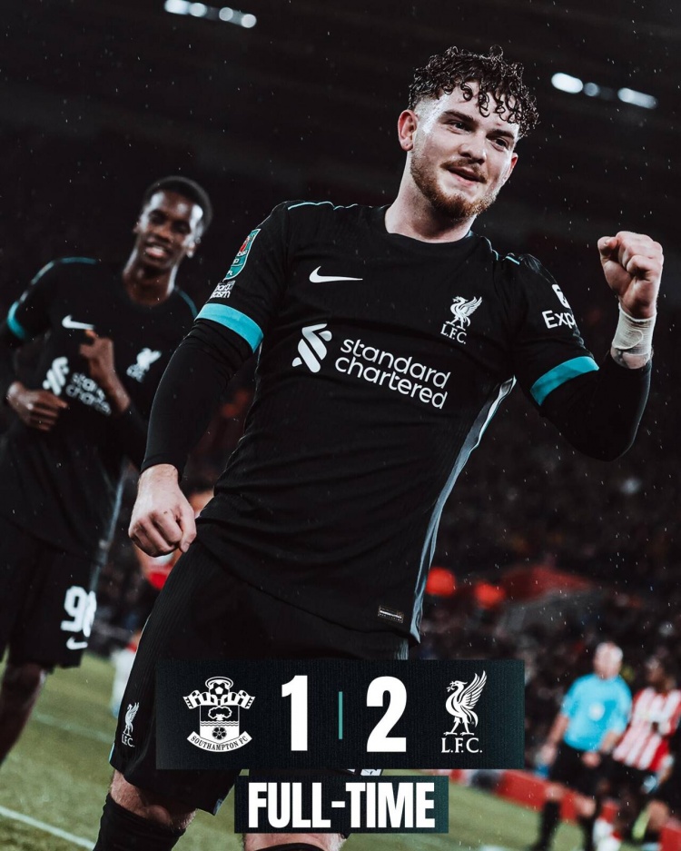 12月19日讯 北京时间12月19日凌晨4时,英格兰联赛杯四分之一决赛,利物浦做客圣玛丽球场对阵南安普顿。上半场,努涅斯首开纪录,埃利奥特扩大领先优势。利物浦半场2-0领先南安普顿。下半场,阿彻扳回一城。最终利物浦2-1击败南安普顿,晋级联赛杯半决赛。