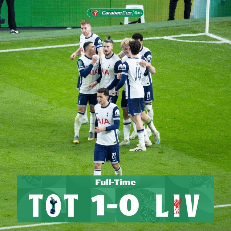 1月9日讯 北京时间1月9日04:00,英格兰联赛杯半决赛首回合热刺迎战利物浦的比赛在新托特纳姆热刺球场进行,上半场德拉古辛低射造险,本坦库尔重伤离场,宽萨伤退,下半场阿利森失误险送礼,波罗失良机,索兰克助攻贝里瓦尔抽射打破僵局,最终首回合热刺1-0利物浦取得先机,红军24场不败遭终结。