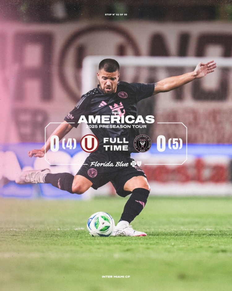 全场比赛结束,迈阿密国际5-4秘鲁体育大学。