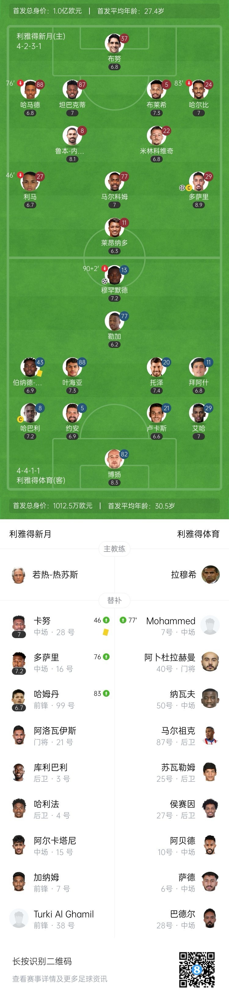 两连平!新月1-1利雅得体育先赛距榜首1分 多萨里扳平体育2球越位