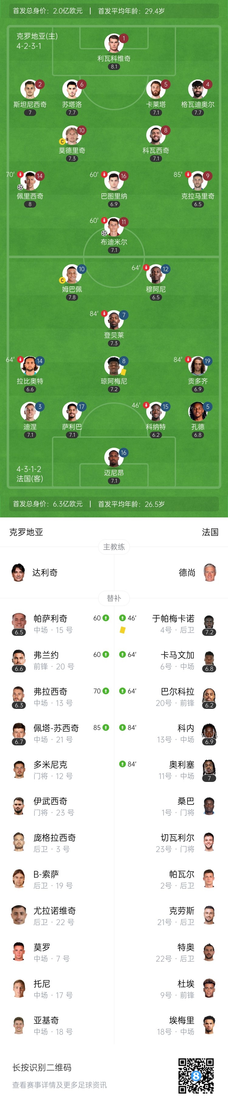 锋线哑火!法国首回合0-2克罗地亚 佩里西奇传射迈尼昂扑点