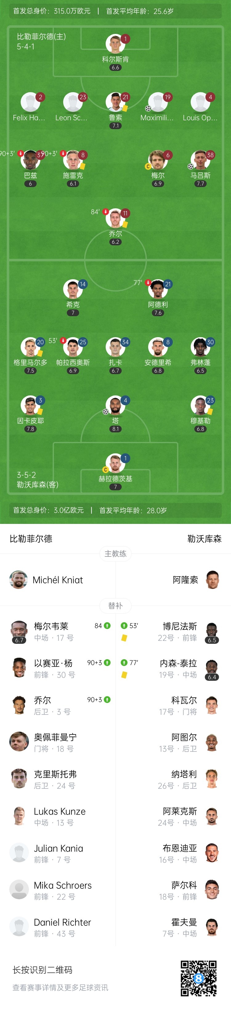 第17分钟,勒沃库森左侧角球开到禁区前点,阿德利头球摆渡,后点塔包抄破门!勒沃库森1-0比勒菲尔德↓