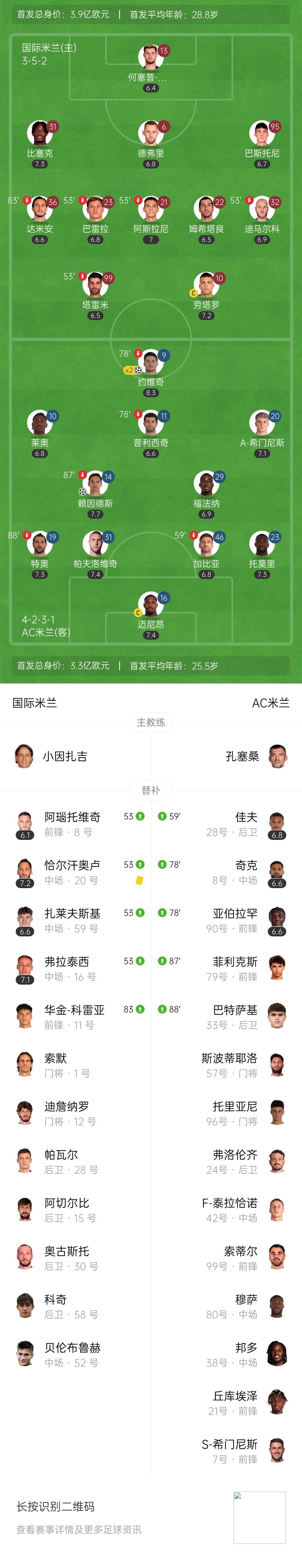约维奇双响!米兰3-0总比分4-1国米进意杯决赛 米兰5战德比3胜2平