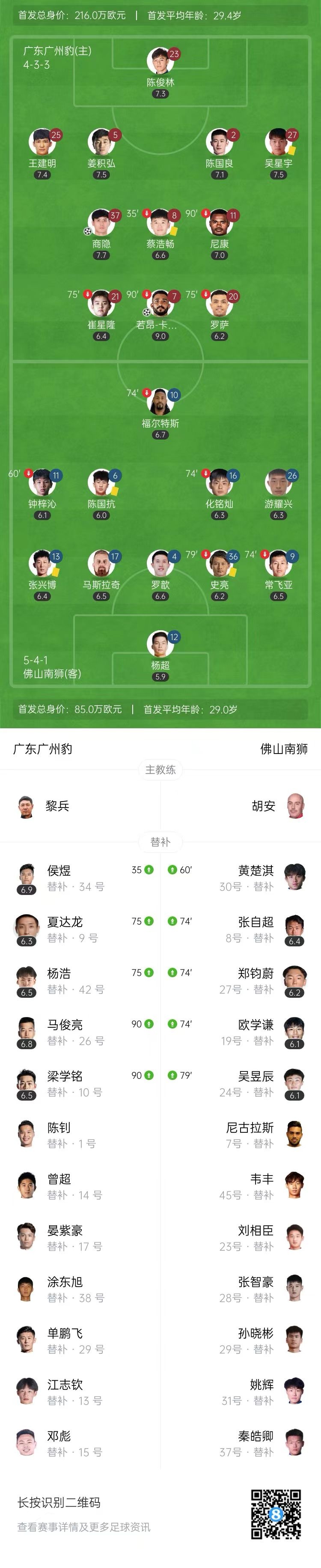 中甲-广东广州豹2-0佛山南狮 若昂-卡洛斯传射建功商隐破门