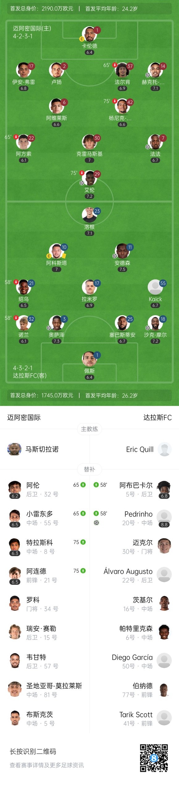 下半场补时6分钟,最终,迈阿密3-4达拉斯。