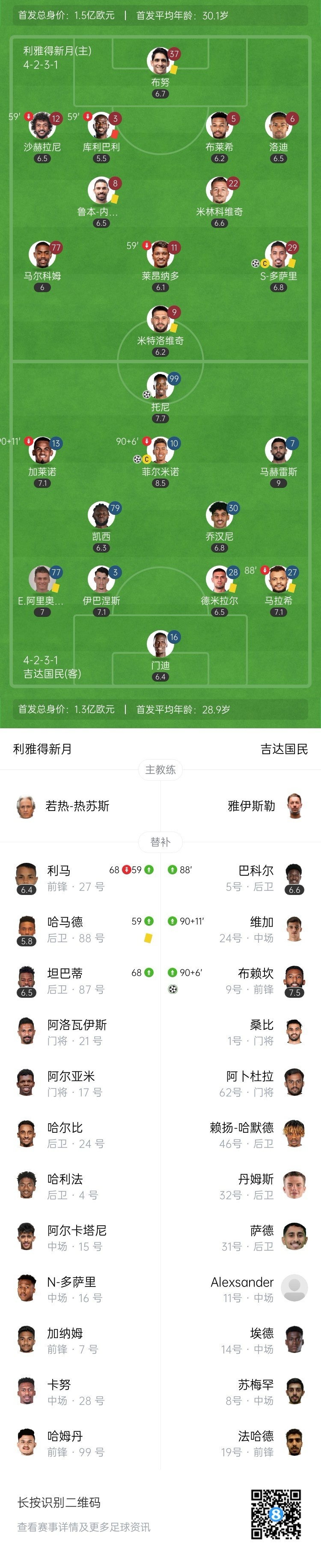全场比赛结束,吉达国民3-1淘汰利雅得新月进军亚冠精英联赛决赛。