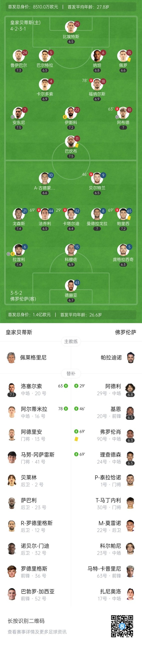 双方首发以及换人信息: