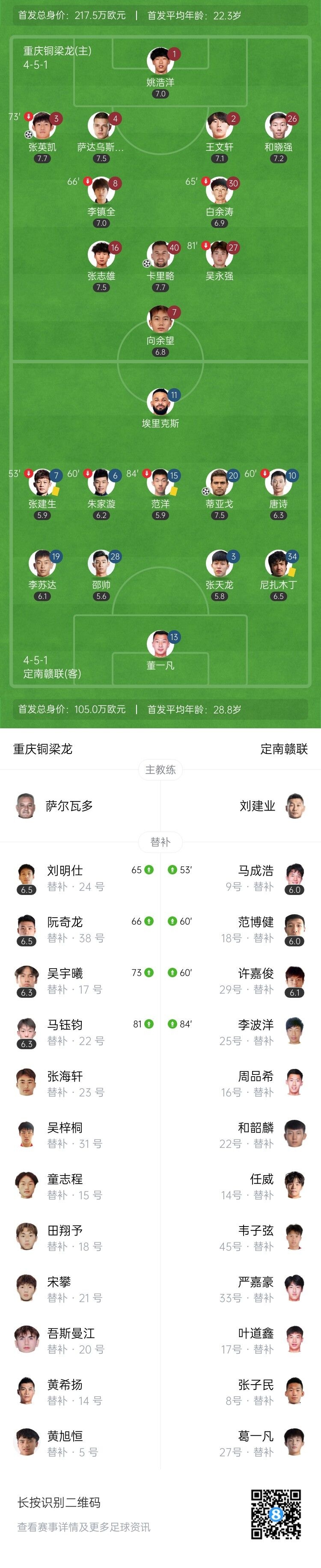 第31分钟,董一凡出击没把球打远,向余望推射差之毫厘。↓