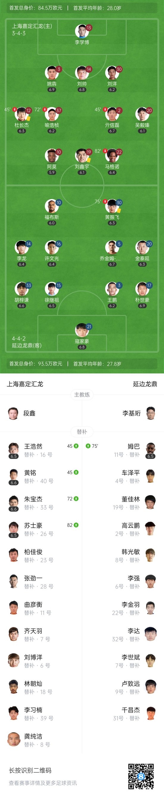 中甲-上海嘉定汇龙0-0延边龙鼎 马格诺失良机双方皆0射正