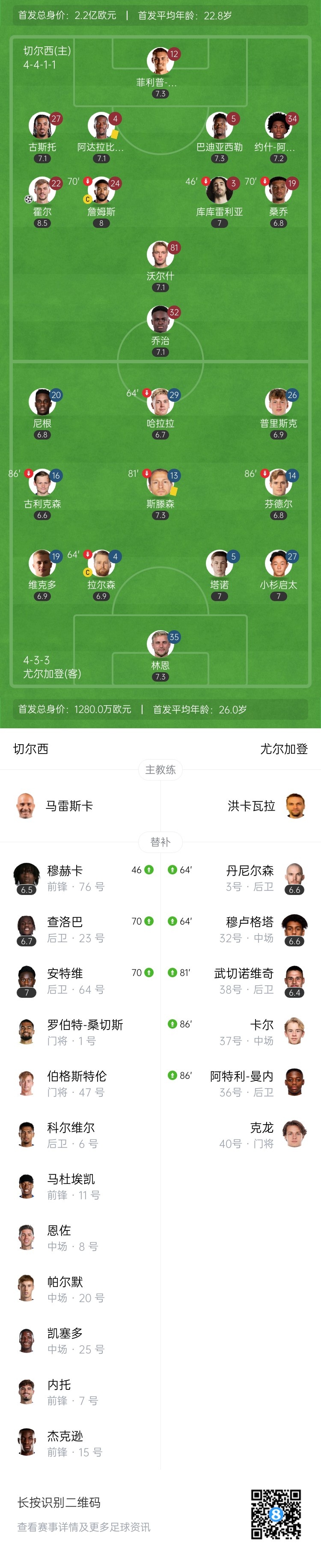 下半场补时2分钟。最终全场比赛结束,切尔西1-0尤尔加登。