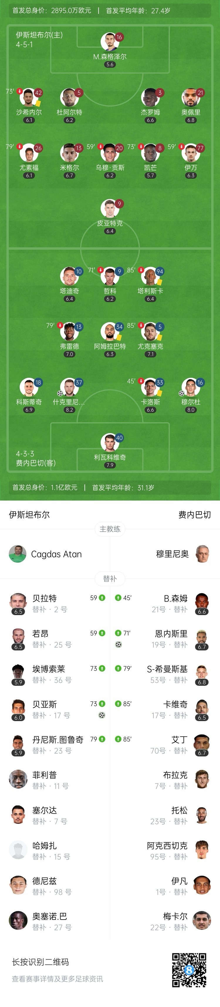 全场比赛结束,费内巴切客场4-1战胜伊斯坦布尔。