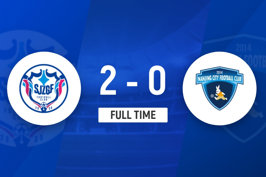 下半场补时5分钟,石家庄功夫2-0南京城市。