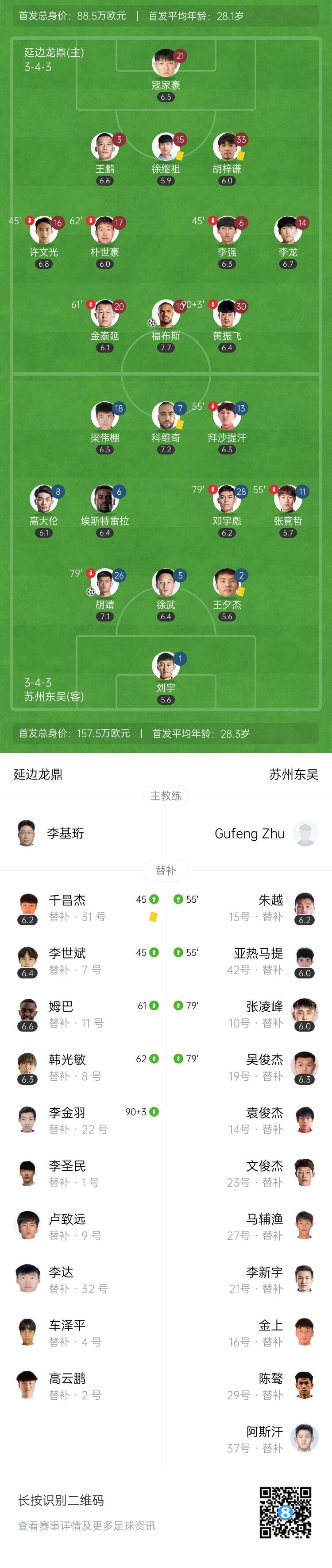 中甲-延边龙鼎2-1苏州东吴迎两连胜 福布斯破门胡靖进球+乌龙