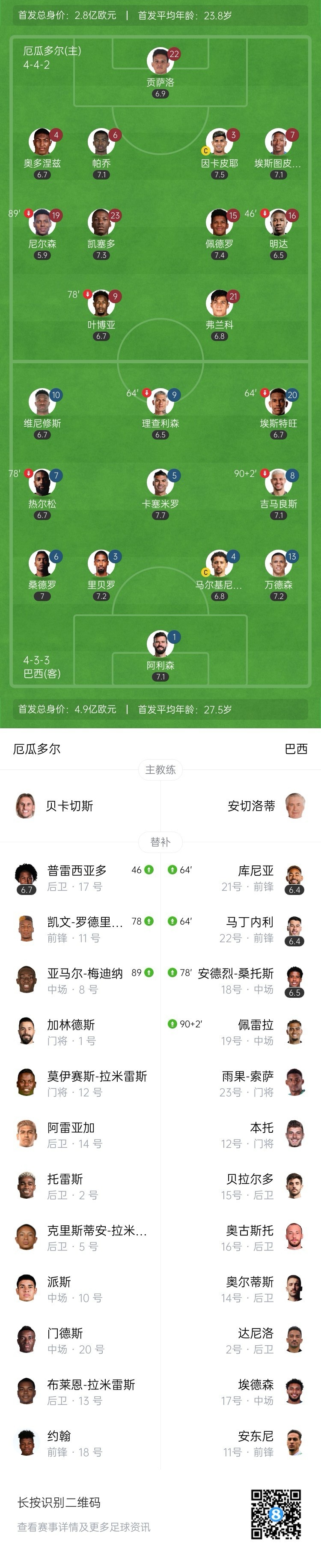本场比赛是安切洛蒂执教巴西国家队的首秀!↓