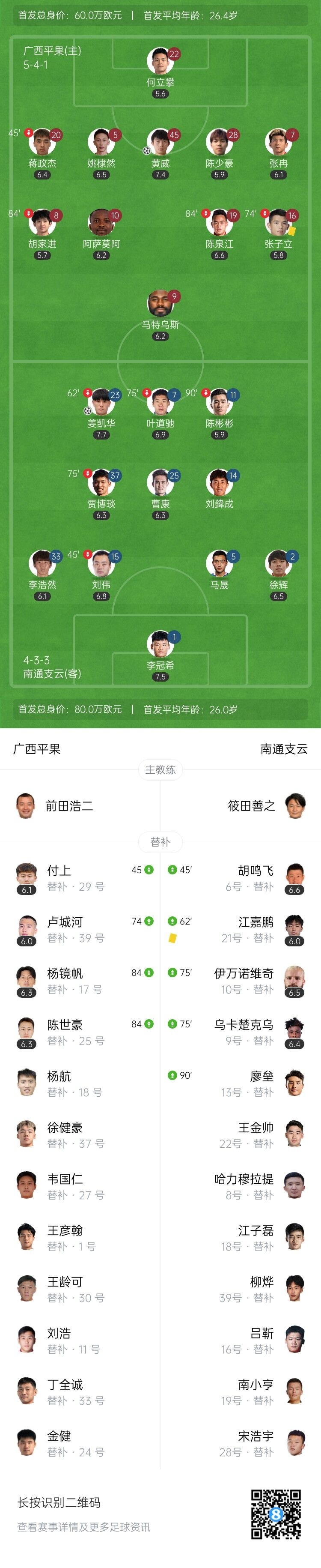 伤停补时7分钟。全场比赛结束,广西平果1-2南通支云。