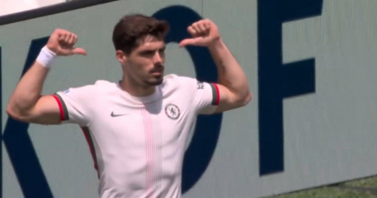 第90分钟,切尔西定位球开进禁区,后点队友跟进的小角度打门被门将化解↓