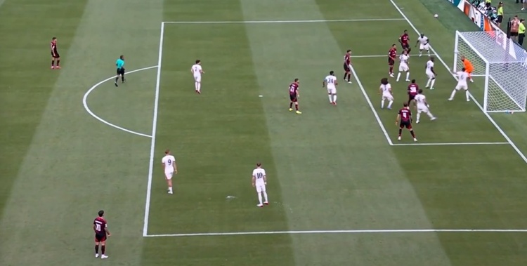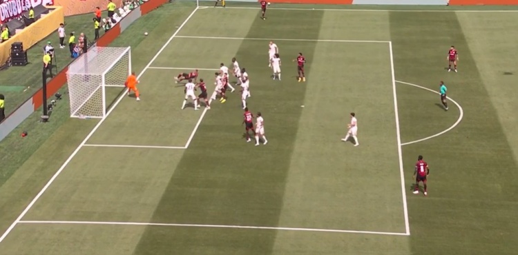 第43分钟,弗拉门戈右路任意球开到禁区,科尔维尔关键门线解围破坏↓