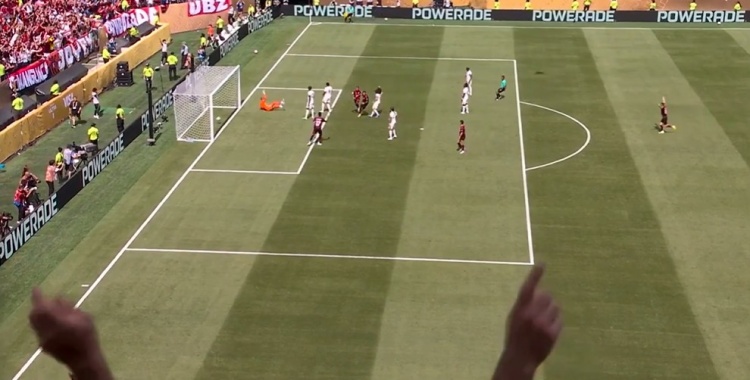 第62分钟,弗拉门戈右路进攻,热尔松传中送到后点,普拉塔头球摆渡回门前,恩里克轻松推射空门入网,弗拉门戈1-1扳平↓