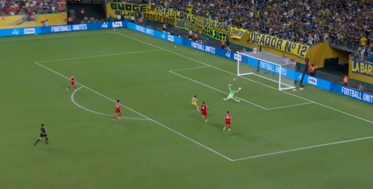 第31分钟,博卡青年禁区角附近的任意球机会,泽农主罚攻门势大力沉!诺伊尔将球击出底线↓