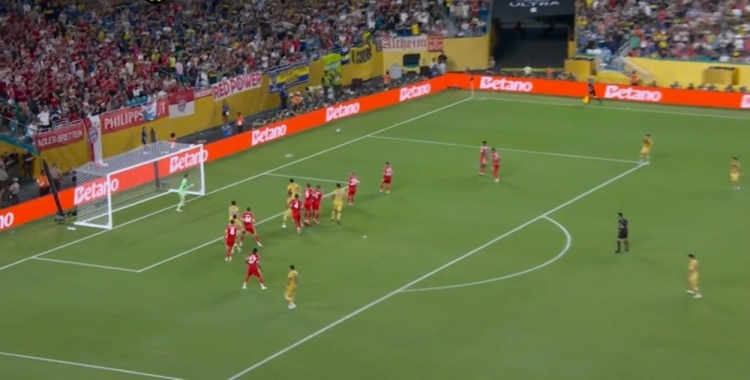 第8分钟,拜仁右侧角球机会,奥利塞主罚打进禁区!路线上没有人碰到皮球,球直接转进了球门后角!但主裁回看录像,判定格纳布里干扰门将!进球无效↓